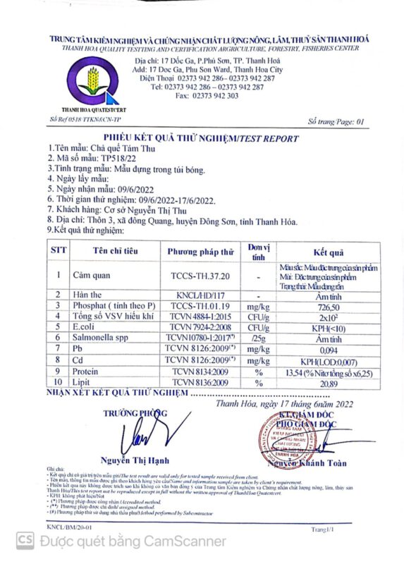 Rất tự tin về chất lượng và khâu an toàn thực phẩm của cơ sở. Thời gian qua, cơ sở đã chủ động phối hợp các cơ quan ban ngành chức năng của tỉnh như: Chi cục QLCL Nông lâm sản và Thủy sản Thanh Hoá; Trung tâm Kiểm nghiệm và chứng nhận chất lượng Nông lâm sản và thủy sản; UBND huyện Đông Sơn hướng dẫn cơ sở tuân thủ quy trình sản xuất theo quy định để đưa ra thị trường các sản phẩm chất lượng, bảo đảm ATVSTP. Cơ sở cũng thường xuyên lấy mẫu giám sát sản phẩm, làm bản tự công bố chất lượng sản phẩm trước khi lưu thông ra thị trường.
